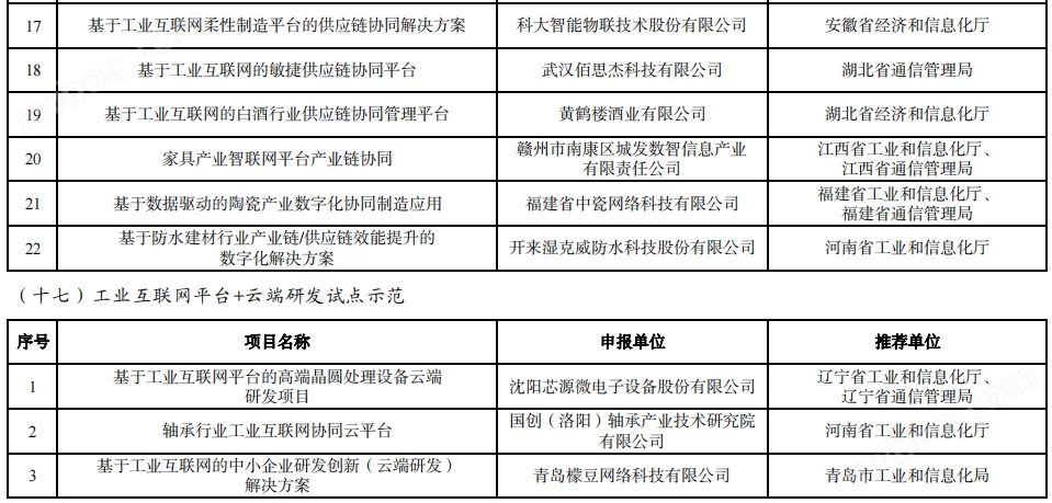 2023年11月,工信部面向全国组织开展2023年工业互联网试点示范项目申报工作,其目的是为了深入贯彻《国务院关于深化“互联网+先进制造业”发展工业互联网的指导意见》,根据《工业和信息化部办公厅关于组织开展2023年工业互联网试点示范项目申报工作的通知》(工信厅信管函﹝2023﹞319号),经企业申报、地方推荐、专家评审,263个项目入选。