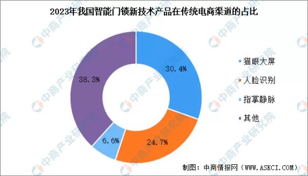 随着技术的更新迭代,智能门锁产品不断创新,开锁方式更趋于智能化,猫眼大屏、高性价比人脸识别锁、掌静脉、双摄等新品纷纷涌现,加速市场渗透率增长。据奥维云网(AVC)线上监测数据,新技术产品在传统电商渠道渗透率持续提升,其中,猫眼大屏零售量占比为30.4%,较去年增长10.4%;人脸识别技术产品的零售量占比达24.7%,增幅13%;指掌静脉识别技术产品占比达6.6%,零售量呈上升趋势。