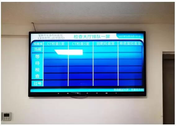 在智慧门诊的构建中,深圳平乐骨伤科医院采用了狄耐克物联智慧自助签到机、诊室门口屏、候诊综合屏等数智终端产品,涵盖19寸、43寸、55寸等多款尺寸。
