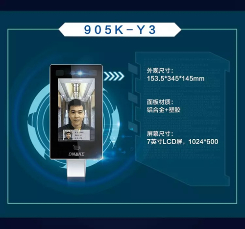 905K-Y3是狄耐克继Y2之后开发的又一款人脸识别产品,可与人行闸机配合使用,也可作为楼宇对讲门口机使用。