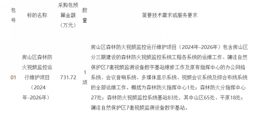 ♦♦项目名称:房山区森林防火视频监控运行维护项目