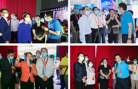 冬奥会秘书长韩子荣、北京市副市长张建东、北京市副市长隋振江、北京市广电局党组书记局长杨烁、北京市广电局副局长朱咏雷、北京市广电总局电影频道中心副书记张玲等领导在中国电影博物馆馆长陈玲和台达-中达电通视讯事业处总监朱力的陪同下,参观了“超高清8K影院放映技术”观摩区。