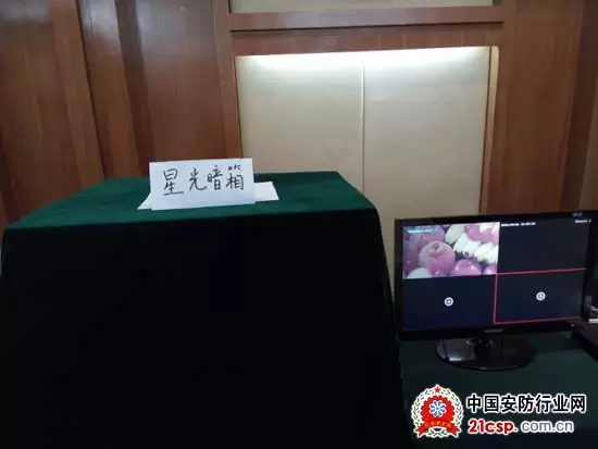 星光摄像机以及普通摄像机均置于一个完全封闭的暗箱中,暗箱内部接近全黑并且没有补光源,看以看到左侧星光摄像机依旧可以清晰地还原出彩色图像,而右侧普通摄像机几乎看不清图像。