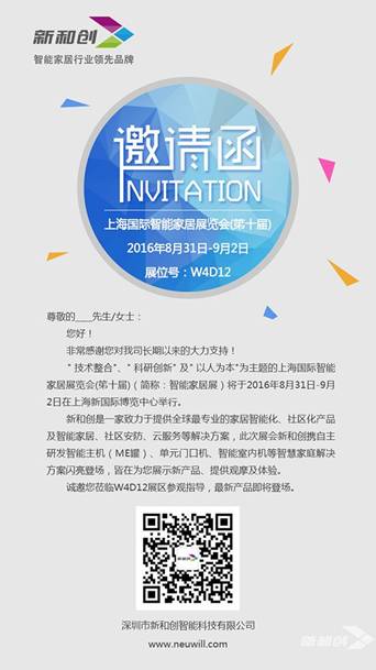 深圳市新和创智能科技有限公司将携多款新品、三大智能家居体验区、多种智能家居系统解决方案一展风采。