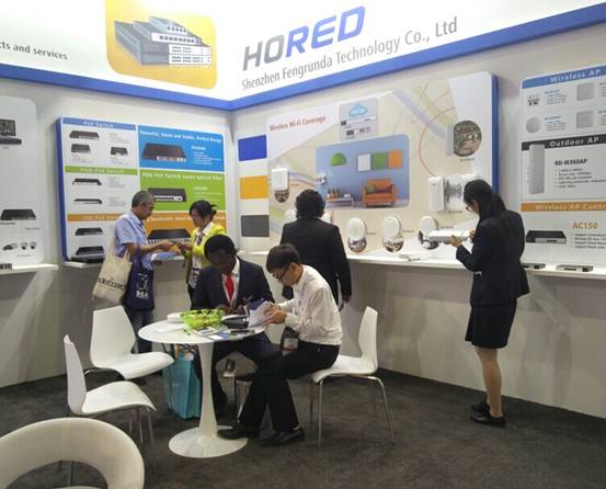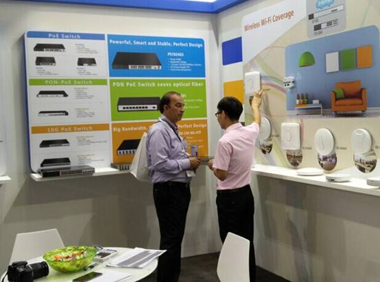 此次展会,全面展现了丰润达在安防传输领域以及无线通信领域的最新成果,包括PoE交换机、万兆交换机、24口全光交换机、PON-PoE交换机、OLT、无线AP、无线网桥、无线控制器等产品,以及特色安防PoE、无线覆盖等多系列整体解决方案。其中,PON-PoE交换机、无线网桥以及最新无线AP,引来众多外籍友人的围观。