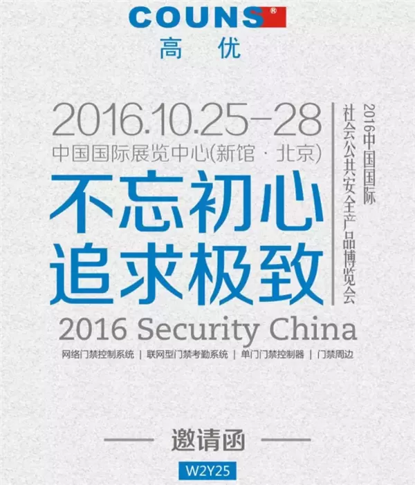 【安防在线 www.anfang.cn】2016年10月25日-28日期间,备受关注的2016年第十三届中国国际社会公共安全产品博览会(简称“安博会”)将在北京隆重举行。「COUNS高优」作为专业门控“智”造商,届时将携高优全系列产品于北京・中国国际展览中心新馆W2Y25盛装闪耀登场,向您展示「COUNS高优」15年成长之路。