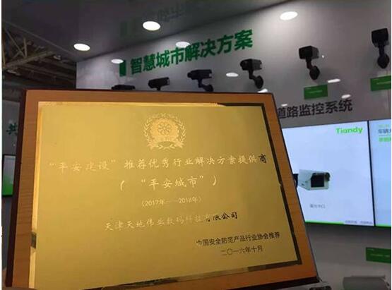 10月27日,安博会主办方中国安防行业协会在安博会现场公布了“平安建设”优秀行业解决方案提供商获奖名单。“天地伟业平安城市标准方案”、“天地伟业金融行业解决方案”、“天地伟业高清数字化公安预审系统标准技术方案”、“天地伟业智慧交通视频监控解决方案”、“天地伟业教育行业解决方案”“天地伟业社区家庭行业解决方案”6项专业解决方案均以领先的优势上榜。其中,司法和教育领域排名第二,交通和金融领域排名第三。天地伟业以行业覆盖领域广、技术优势突出获得一致认可。