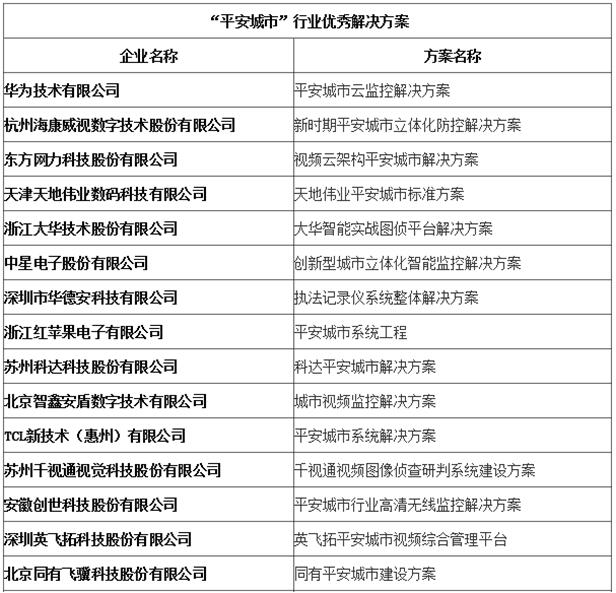 为配合各地深入开展的“平安建设”活动,中国安防产品行业协会为期五个月,在全国范围内组织开展了为“平安城市”建设推荐优秀行业解决方案提供商的工作,共收到200多家企业的申报方案318个,经过对提交方案的分析、整理、核实、计算和专家认真评议,以及方案在实际应用中的先进性和创新性等因素的综合考量,共计12个行业的143个优秀方案入选。