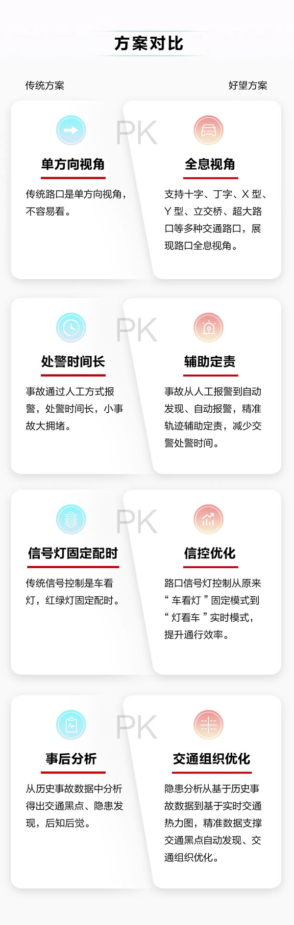 通过全息路口的升级,打造“点”数据的精细化管理,并以此延伸到路段,解决路段盲区,提升路段管理与通行效率,通过路段数据的拟合,形成区域态势,实现全域治理网。由点及面,构建从微观个体到宏观系统的全息路网认知体系,以全域安全、科学评价精细治理、主动服务、新型警务、数据运营、自动驾驶六大特质服务未来城市出行。