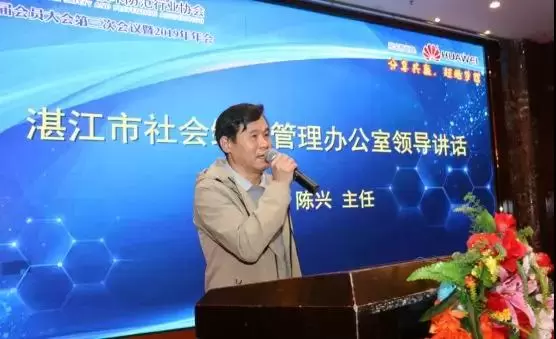 湛江市社会组织管理办公室主任陈兴在讲话中表示,充分肯定了协会成立以来所取得的成绩。也希望协会全体会员能同心协力,不断扩大协会的影响力和凝聚力;要充分发挥协会的桥梁作用;要主动作为,不断提高服务能力和水平,团结带领广大会员单位推动协会工作取得新突破,为全市安防行业发展做出积极贡献。