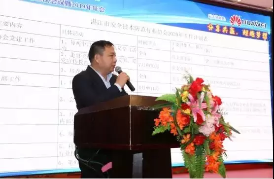 湛江市安全技术防范行业协会秘书长张子牧代表理事会向大会作《湛江市安全技术防范行业协会2019年工作总结及2020年工作计划报告》以及《湛江市安全技术防范行业协会2019年度财务报告》。