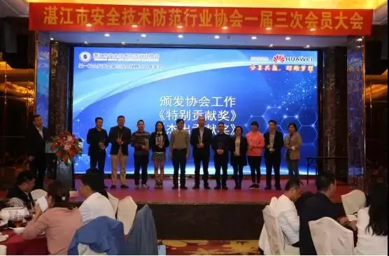 【安防在线 www.anfang.cn】2019年12月6日,湛江市安全技术防范行业协会第一届会员大会第三次会议暨2019年会在金辉煌酒店六楼会议厅隆重举行,湛江市公安局科技信息化支队副支队长黄鸿飞、湛江市公安局安全技术防范管理办公室主任蔡志伟、湛江市社会组织管理办公室主任陈兴等领导以及各兄弟协会代表等嘉宾和来自湛江市安防协会会员代表们欢聚一堂,共同参加盛会。