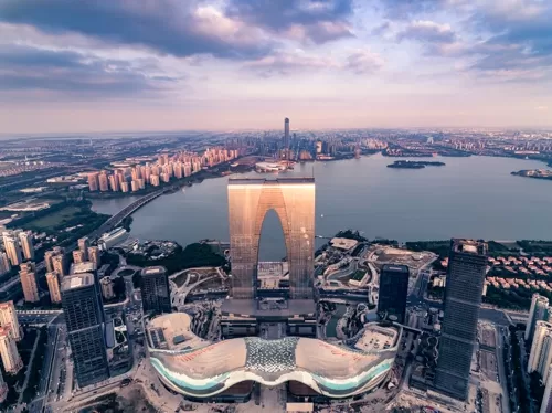 漫步青石板的小巷,欣赏评弹的古韵,姑苏城的韵味是一种悠然自得的流露。苏州古城是江南地区的文化中心,而现代化的苏州也为世人带来了不一样的惊艳。金鸡湖畔的苏州中心是古城苏州的新地标。苏州中心位于这座文化名城的CBD核心地段,总建筑面积约113万平方米,集商场、办公楼、公寓、酒店于一体。2017年11月,苏州中心正式开门迎客。