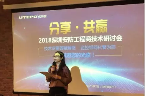 本次活动由优特普副总经理熊英主持,优特普总经理于刚军向与会嘉宾致欢迎辞,优特普产品经理、技术人员分别就网络监控市场最新发展趋势,PoE技术在安防工程项目中的应用,物联网云平台在网络监控系统中的应用等议题做了主题分享。