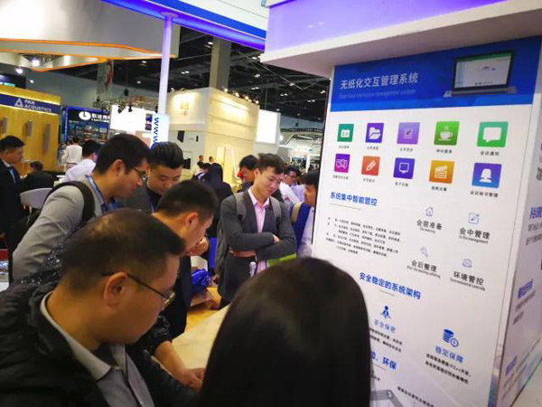 其中全新第三代视频会议系统是依靠最优秀的音视频网络技术,可在互联网和专网高效传输音频、双流及数据内容的云视讯系统,为用户带来极致视听,让沟通更简单、高效!展会现场人气络绎不绝,吸引众多客户驻足了解,同时获得了众多行业专业人士户的肯定和认可。
