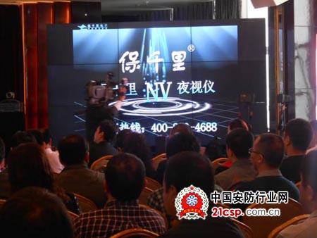 图为保千里液晶拼接大屏和夜视仪在研讨会现场完美展示