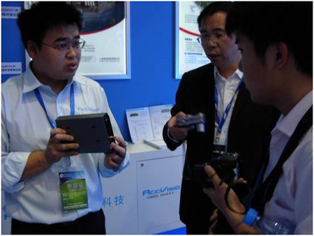 现场展出的智能高清产品还有:智能高清网络摄像机、高清智能视频服务器、便携式智能监控箱、隐蔽型监控系统、机架式服务器等。观众都表现出极大的兴趣,向技术人员咨询具体功能、索要资料。