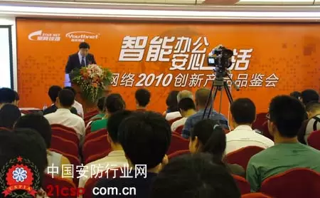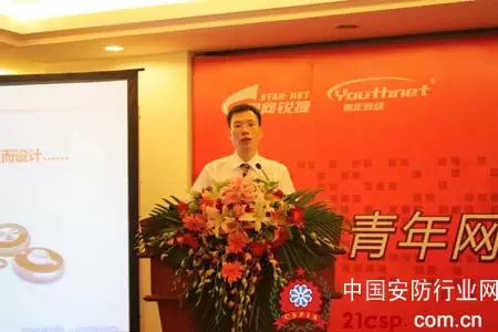 厦门青年网络通讯股份有限公司常务副总经理王毅先生现场致辞,介绍了青年网络的公司背景和优势资源青年网络成立于1999年,到现在已经11年,2007年推出了“小门瞳”无线监控产品,是基于彩信和GSM网络的无线监控报警产品。虽然第一年只销售1000台,但到2008年销售1万台,到2009年为止已经销售了10万台。其间为国内运营商提供了终端产品和大量的解决方案,星网锐捷具有非常强大的研发团队,具备先进的管理体系,在全国拥有多个办事处,与大型科研机构和高校都有深度合作,主要客户群体除了运营商以外,还覆盖到金融、教育、税务、交通等多个行业。