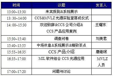 CCS公司中国区首席代表王耀东先生将会亲临本次会场,为大家介绍CCS产品应用案例。另外,CCS和微视凌志公司都将会派出资深工程师进行理论与实际应用的详细讲解。