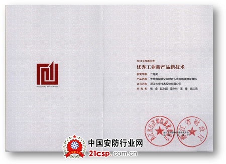 2012年8月,由浙江省经济和信息化委员会、浙江省财政厅联合组织的“2011年浙江省优秀工业新产品新技术奖”评选结果揭晓:大华股份“大华音视频全实时嵌入式硬盘录像机”荣获浙江省优秀工业新产品新技术奖二等奖。