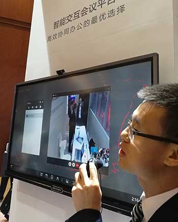 安防大佬海康威视在本届展会上全新推出了智能交互会议平台,这是一个能将会议工具、界面和远程控制跨多个位置集成的无缝系统,并且能支持多用户同时使用。该平台兼具智能化的人机交互性、多类设备的兼容扩展性以及远程协同的稳定性,可广泛运用全行业类的多种类会议场景。