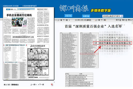 入选“深圳质量百强企业”,这是一种肯定,更是一种责任。未来,豪恩安防继续贯彻市政府“质量强市”发展战略,把质量作为企业拼搏最高目标,坚持用高品质的产品,为世界带来安全、和谐,做享誉全国乃至世界的代表着“深圳质量”的产品和企业。