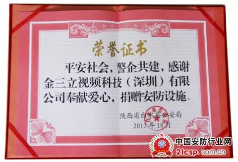 金三立积极实践企业社会责任,为陕西白水县捐献安防设备一批。金三立一直以“贡献社会”为核心发展理念,崇尚爱心善举,为和谐社会尽一份力量。