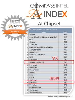 值得注意的是,在这份榜单中排名全球前20名的AI芯片企业,中国大陆企业占据两个席位――分别是华为和瑞芯微。能够在群雄环伺中占据高位,华为和瑞芯微在AI芯片领域自然有着各自的优势。