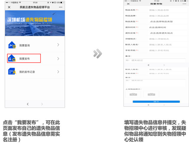 (二)“深圳机场遗失物品招领平台”的操作流程
