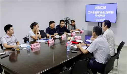 【安防在线 www.anfang.cn】8月23日下午,辽宁省安防协会赵宇秘书长到访苏州市安防协会。秘书长王坤泉携理事及会员单位代表长春金阳高科技有限责任公司董事长王晨阳、苏州工业园区科佳自动化有限公司经理张云霞、慧盾信息安全科技(苏州)股份有限公司经理单t然、江苏中安智信通信科技股份有限公司市场总监程莉、胡磊宁一同与赵秘书长进行交流座谈。