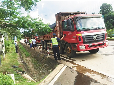 9月5日,执法人员在澄迈福山查处超载货车。(省交警总队提图)