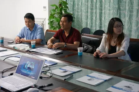 下午,中德宏泰召开座谈会,与杰达领导共话发展,参席人员有杰达总经理钮群星、杰达总经理助理吕丽英、杰达经理刘庆、中德宏泰营销总监杨银剑、销售工程师赵静。