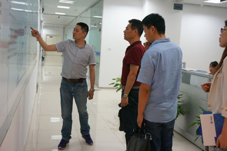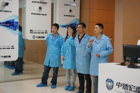在参观过程中,杰达总经理钮群星对于中德宏泰所提供的服务政策问题颇为关注,在中德宏泰营销总监杨总的详细讲解下,杰达钮总表示中德宏泰提供24小时贴心服务,随时解决客户问题,满足客户需求,想其所想,思其所思的服务理念是其巨大的行业优势,他希望以此次考察为契机,进一步加强双方交流合作,携手共创美好明天,打造“智慧城市”。