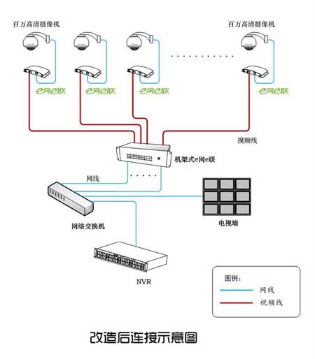 正因为其在国家机关当中具有重要的地位,对于其监控升级改造工程提出了更加严格的要求,无法象新建系统那样大拆大建,不能打扰工作人员的正常办公。采用e网e联的改造方案后,以上用户和工程商头痛的问题都迎刃而解,施工流程和日常巡检维护一样简单,就已将香港驻京办大楼的视频监控升级到了百万高清,将其安全管理层次提升到了新的高度。