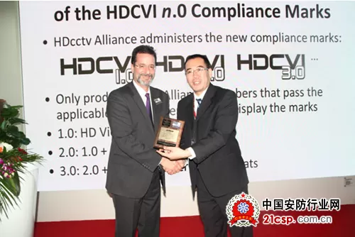 发布会最后,为表彰大华股份对HDCVI2.0标准的贡献,Todd主席代表HDcctv联盟特别给大华股份颁发联盟技术创新奖。在HDcctv联盟与大华股份、台湾Shany等联盟成员的共同推动下,HDCVI2.0标准在全球的推广普及将继续加速。