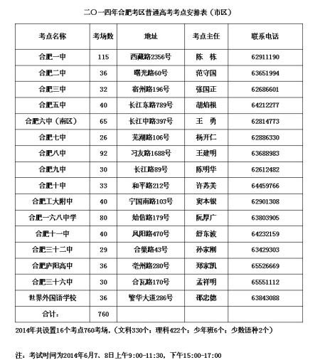 2014年高考将于6月7日拉开帷幕,5月29日下午,记者从合肥市教育招生考试院获悉,今年合肥考区普通高考共设有16个考点760个考场,其中今年新增世界外国语学校为考点。