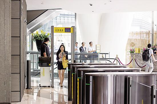 前去富力中心办签证的白领注意了,如果大包小包前往,很可能会被金属探测器“嘀”一下才能进写字楼。不久前,富力地产旗下位于珠江新城的多个写字楼全面升级安保,安保升级最大的变化是,各个门岗处都有工作人员手持金属探测器随时准备检查白领的随身物品。
